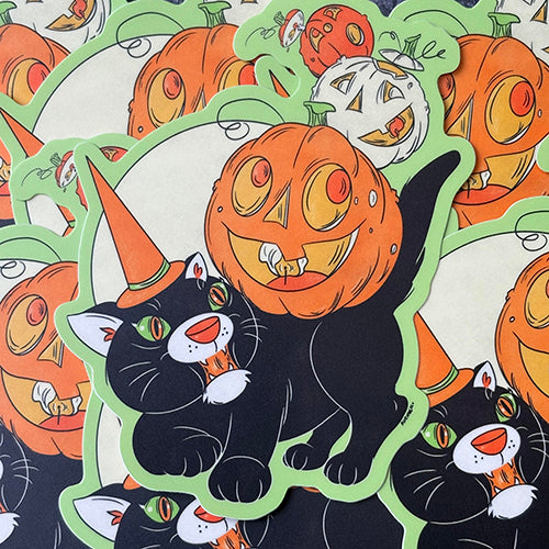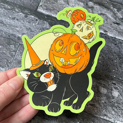 May all your hexes be the happiest! Bring back the nostalgia with this original Happy Hexes design by artist Ash Evans. This 4 inch durable matte vinyl sticker is perfect for adding a vintage Halloween touch to your collection. Made in the USA, it’s a fun and lasting way to showcase your spooky style!