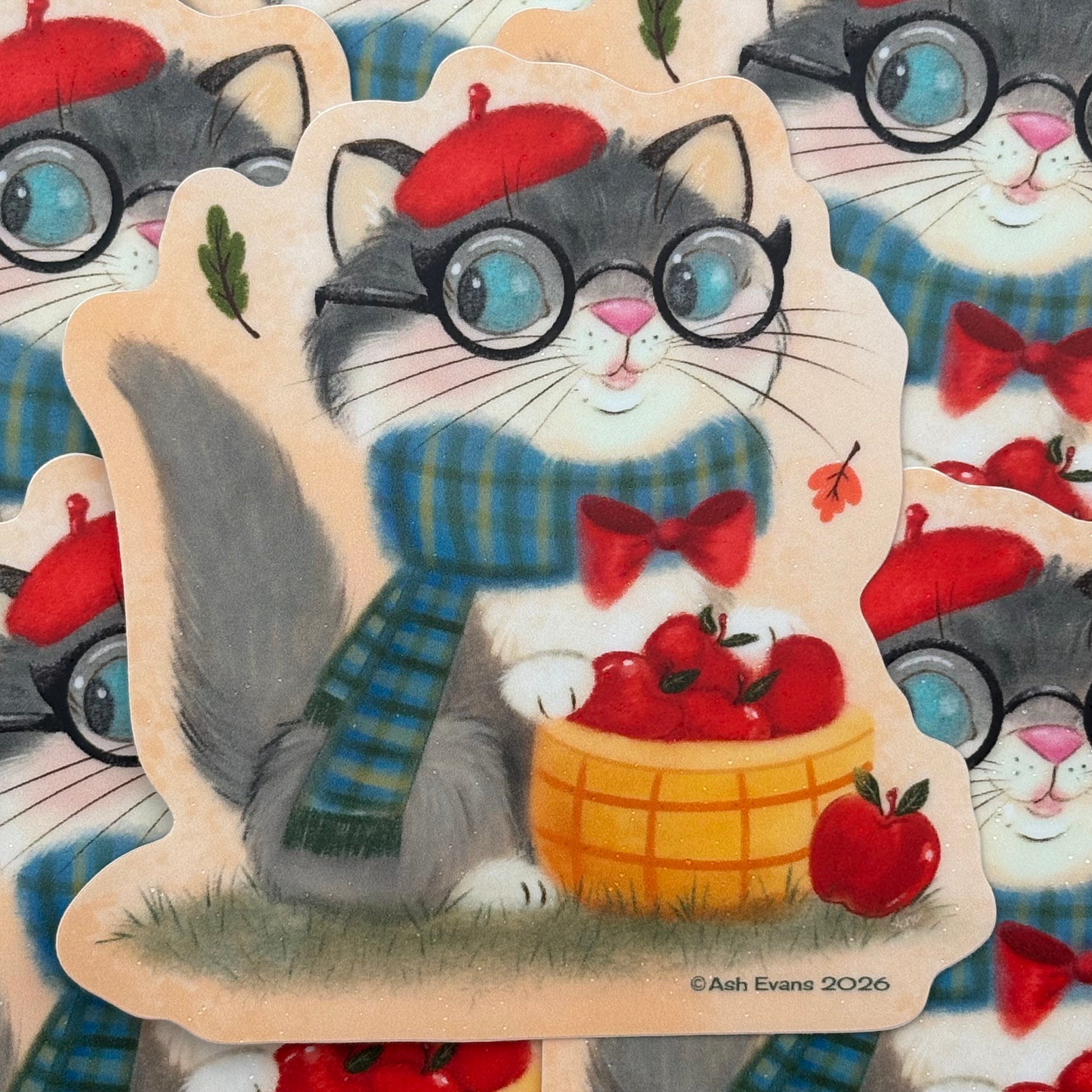 Retro cats September cat matte sticker